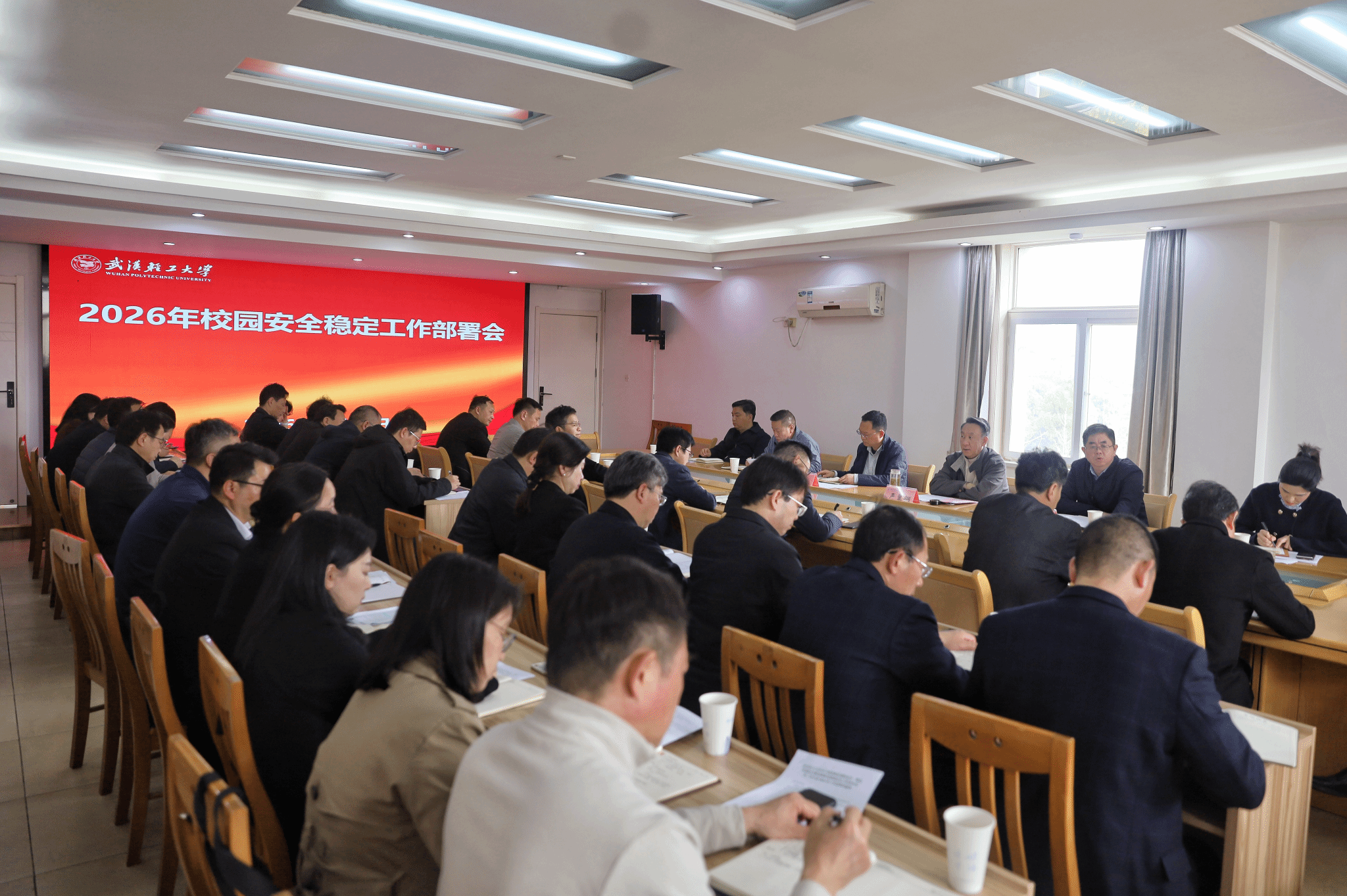 3月25日下午,学校组织召开2026年安全稳定工作会议。会议强调,要统筹发展与安全,筑牢校园安全稳定底线,为学校高质量发展和“十五五”规划开局提供坚实保障。校党委书记严冀钢出席会议并讲话,校长汪海波作校园安全工作总部署。全体职能部门、群团组织、直属单位负责人,以及各学院书记、院长参加会议。副校长曾山主持会议。